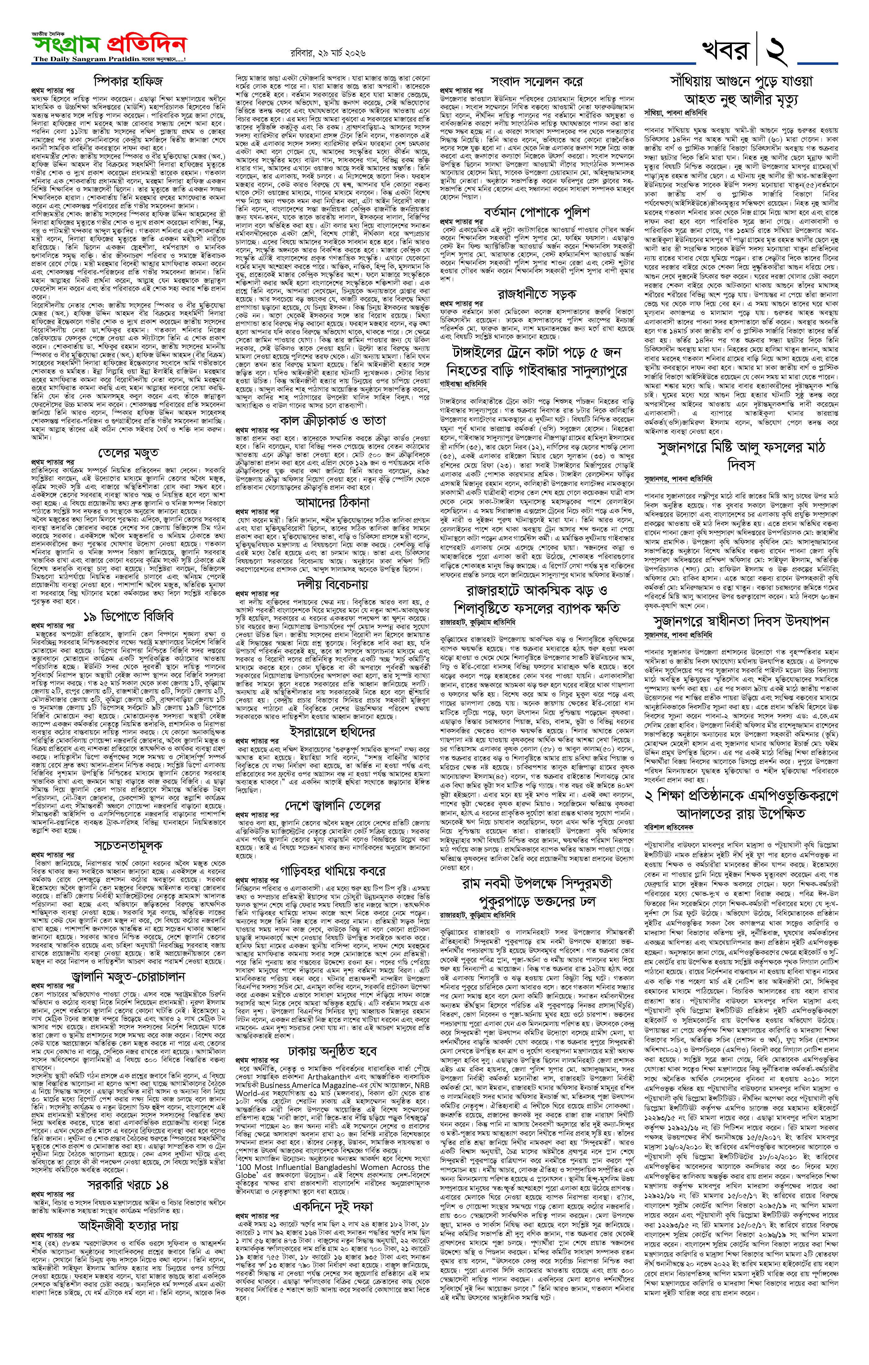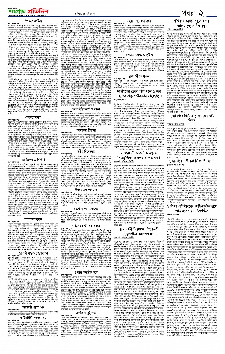 মোবাইলঃ ০১৯১৩-০২৬৮৬১, ০১৮৫০-০০৭৪০০, ই-মেইলঃ sangrampratidin@gmail.com